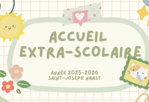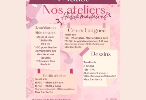 PS: La garderie de l’école fonctionnera normalement les mardis et jeudis. Si votre enfant reste à la garderie de l’école et participe à un atelier à 16h, par exemple, celui-ci sera pris en charge par les animateurs en temps et en heure. Ensuite, il pourra rejoindre la garderie de l’école après son atelier.